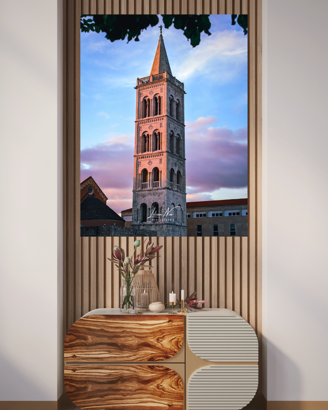« Élevez votre espace avec notre poster captivant mettant en avant le clocher de l’église Saint-Donat à Zadar, sous un ciel violet envoûtant. La silhouette imposante de l’église se détache majestueusement, tandis que le ciel violet crée une ambiance mystique. Plongez dans la richesse historique de Zadar avec cette pièce visuelle saisissante, où chaque détail architectural est accentué par les teintes vibrantes du ciel. Transformez votre espace en une expérience visuelle magique, capturant l’essence enchanteresse de l’église Saint-Donat et du ciel violet de Zadar. »