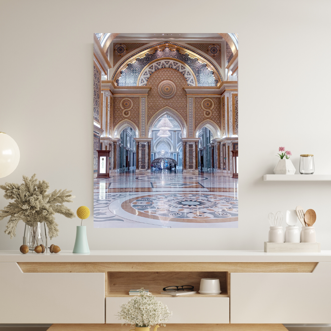 « Célébrez la magnificence de l’intérieur du Qasr Al Watan avec notre poster capturant la grandeur architecturale de ce palais emblématique. Les détails exquis, les jeux de lumière et l’atmosphère majestueuse créent une scène visuelle captivante, évoquant la richesse culturelle et la splendeur de cet édifice emblématique. Ajoutez une touche d’élégance et de fascination à votre espace avec ce poster, célébrant l’intérieur somptueux du Qasr Al Watan. »