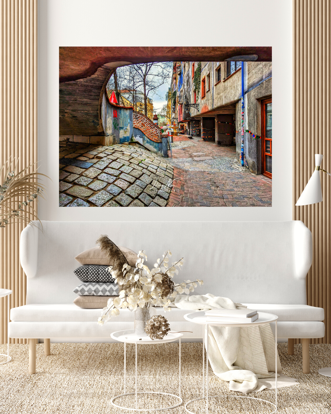 « Explorez l’effervescence créative de la rue Hundertwasser à Vienne avec notre poster vibrant. Les couleurs éclatantes et les formes excentriques créent une scène visuelle dynamique et pleine de créativité. Plongez dans cette représentation, où chaque bâtiment devient une œuvre d’art, transformant la rue en une palette de couleurs et d’expression artistique. Transformez votre espace en une célébration visuelle, capturant la magie colorée et la créativité débridée de la rue Hundertwasser à Vienne. »