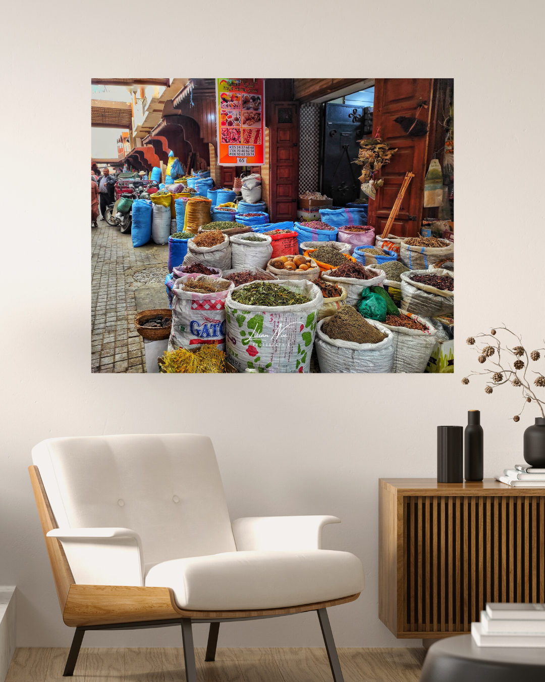 « Plongez dans l’effervescence sensorielle du marché des épices de Marrakech avec notre poster capturant la palette de couleurs et de senteurs vibrantes. Les étals regorgent d’épices, créant une scène visuelle vivante et captivante. Ajoutez une touche de l’atmosphère envoûtante du marché des épices à votre espace avec ce poster, évoquant la richesse des saveurs et des traditions marocaines. »