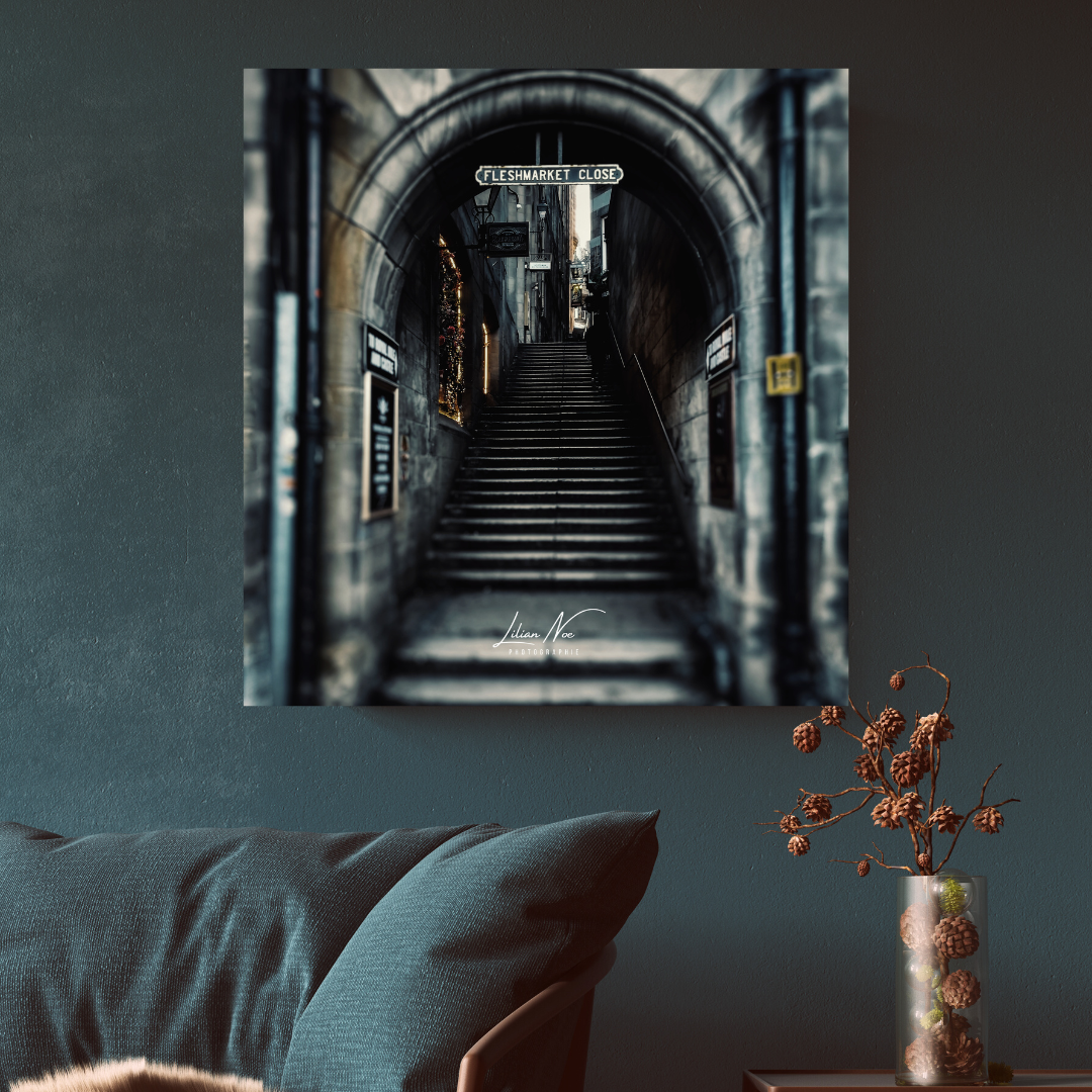 « Plongez dans l’histoire vibrante d’Édimbourg avec notre poster mettant en avant le Flesh Market Close. Les façades sombres et les détails architecturaux riches créent une scène visuelle captivante, évoquant l’atmosphère médiévale de ce passage historique. Ajoutez une touche de mystère et de charme ancien à votre espace avec ce poster, capturant l’essence du Flesh Market Close d’Édimbourg. »