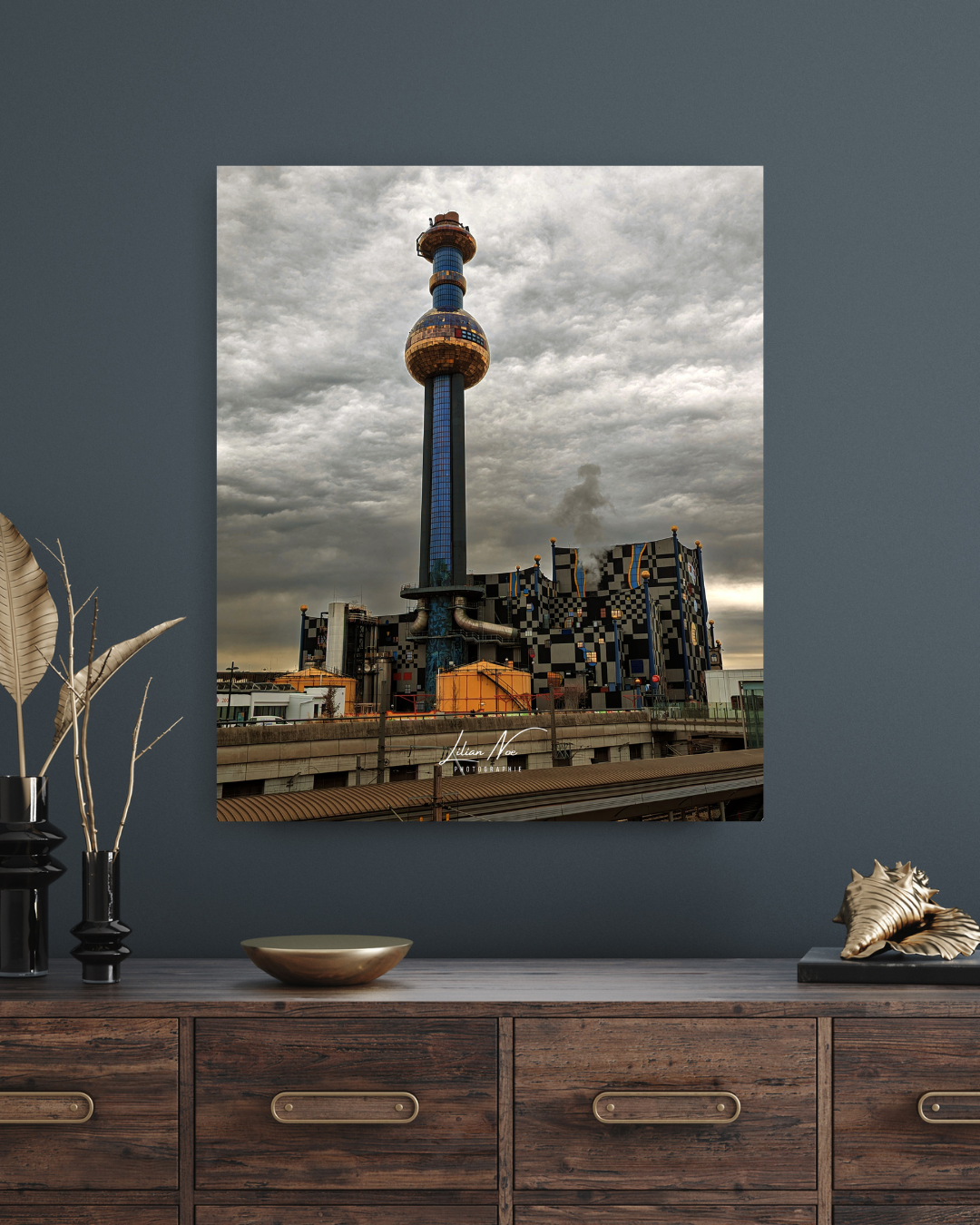« Élevez votre espace avec notre poster captivant mettant en avant la tour d’épuration artistique à Vienne, une œuvre industrielle magnifiquement décorée. Les lignes géométriques et les éléments artistiques s’entrelacent dans une symphonie visuelle unique. Plongez dans cette représentation, où l’architecture industrielle devient une toile artistique, créant une harmonie visuelle captivante. Transformez votre espace en une célébration de l’art industriel, capturant l’alliance entre fonctionnalité et esthétisme à travers la majestueuse tour d’épuration viennoise. »