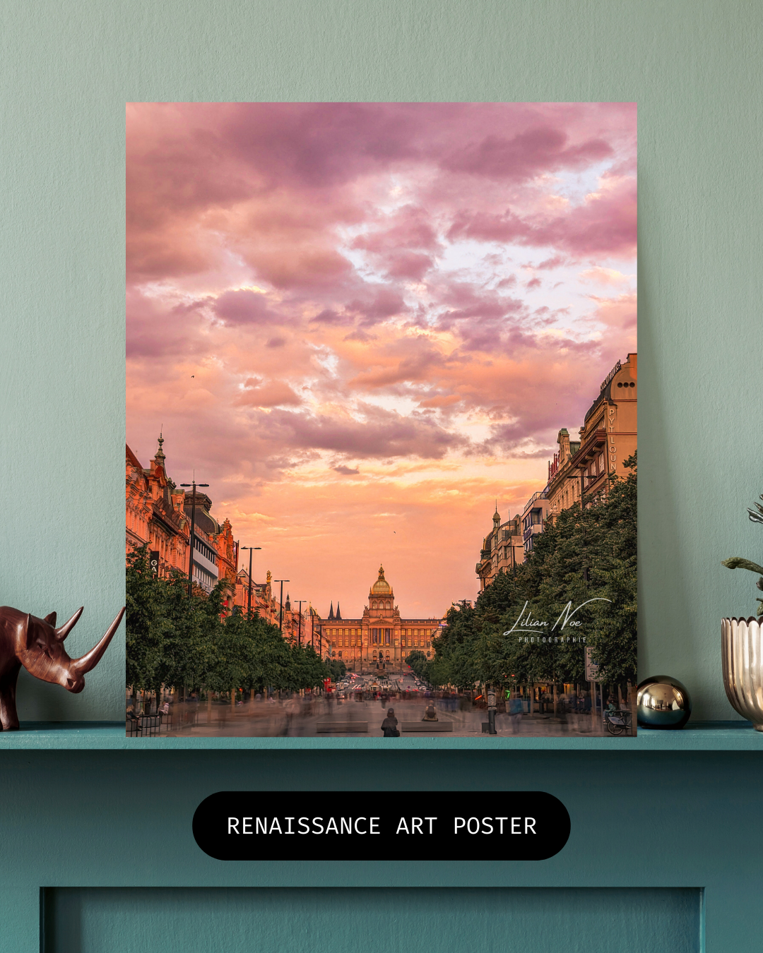 Ciel rosé à Prague devant le Narodni Muzeum centre de Prague…
