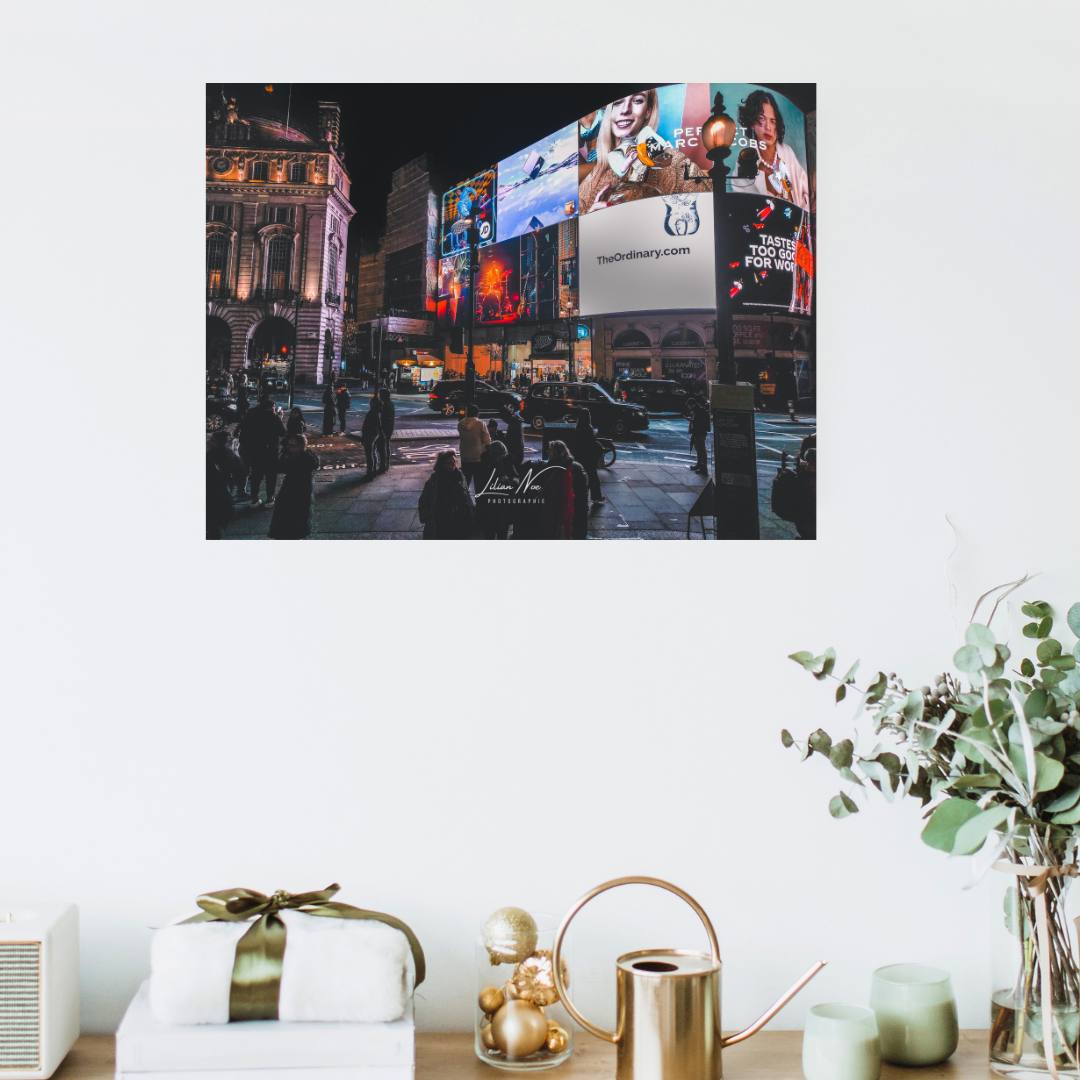 « Célèbrez l’ambiance vibrante de Piccadilly Circus à Londres avec notre poster capturant l’énergie électrique de ce lieu emblématique. Les lumières éclatantes, les enseignes lumineuses et le mouvement constant créent une scène visuelle captivante, évoquant l’effervescence et l’animation de cette place centrale. Ajoutez une touche de l’atmosphère dynamique de Londres à votre espace avec ce poster, célébrant l’ambiance inimitable de Piccadilly Circus. »