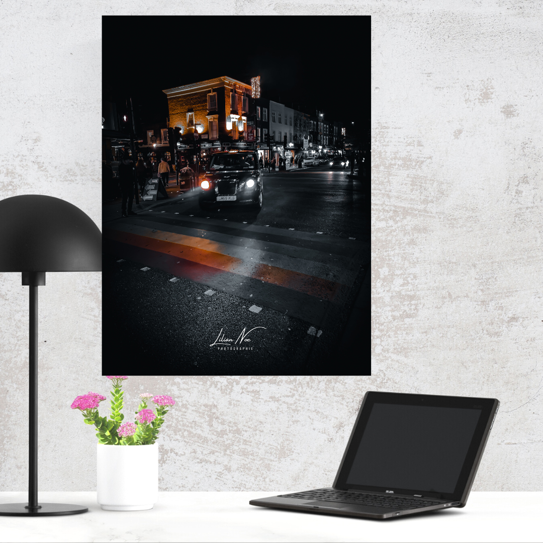 « Célébrez la diversité et l’inclusivité de Londres avec notre poster mettant en avant un taxi londonien emblématique traversant un passage piéton aux couleurs vibrantes de la communauté LGBT à Camden Town. Les nuances de l’arc-en-ciel ajoutent une touche artistique et festive à la scène urbaine. Ajoutez une dose de positivité et de vivacité à votre espace avec ce poster, capturant l’atmosphère dynamique et ouverte d’esprit de Camden Town. »