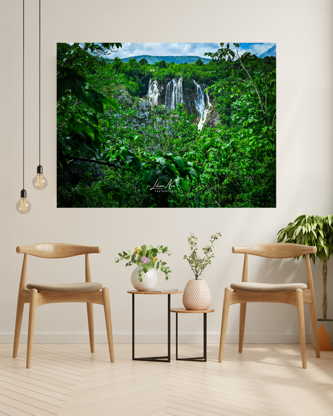 « Captivez vos sens avec notre poster captivant mettant en avant une cascade majestueuse aux Plitvice Lakes. Les eaux cristallines chutant avec élégance créent une scène naturelle hypnotique. Plongez dans la beauté naturelle des cascades de Plitvice avec cette pièce visuelle saisissante, où chaque goutte d’eau ajoute une symphonie visuelle à l’ensemble. Transformez votre espace en un sanctuaire de calme et de beauté, capturant la puissance tranquille d’une cascade à Plitvice Lakes. »