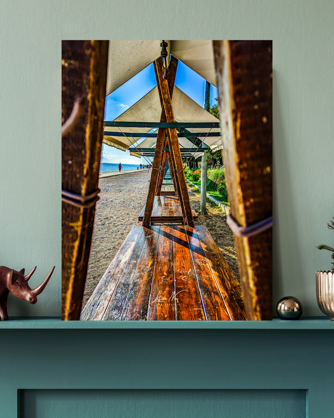 « Célébrez l’art géométrique et la vie quotidienne avec notre poster mettant en avant la table du marché de Zadar, face à l’orgue marin, représentant une infinité de triangles. Les formes distinctives, les couleurs vives et l’atmosphère artistique créent une scène visuelle captivante, évoquant l’harmonie entre l’art contemporain et la vie urbaine à Zadar. Ajoutez une touche de modernité et de créativité à votre espace avec ce poster, célébrant l’originalité sur la place du marché de Zadar. »