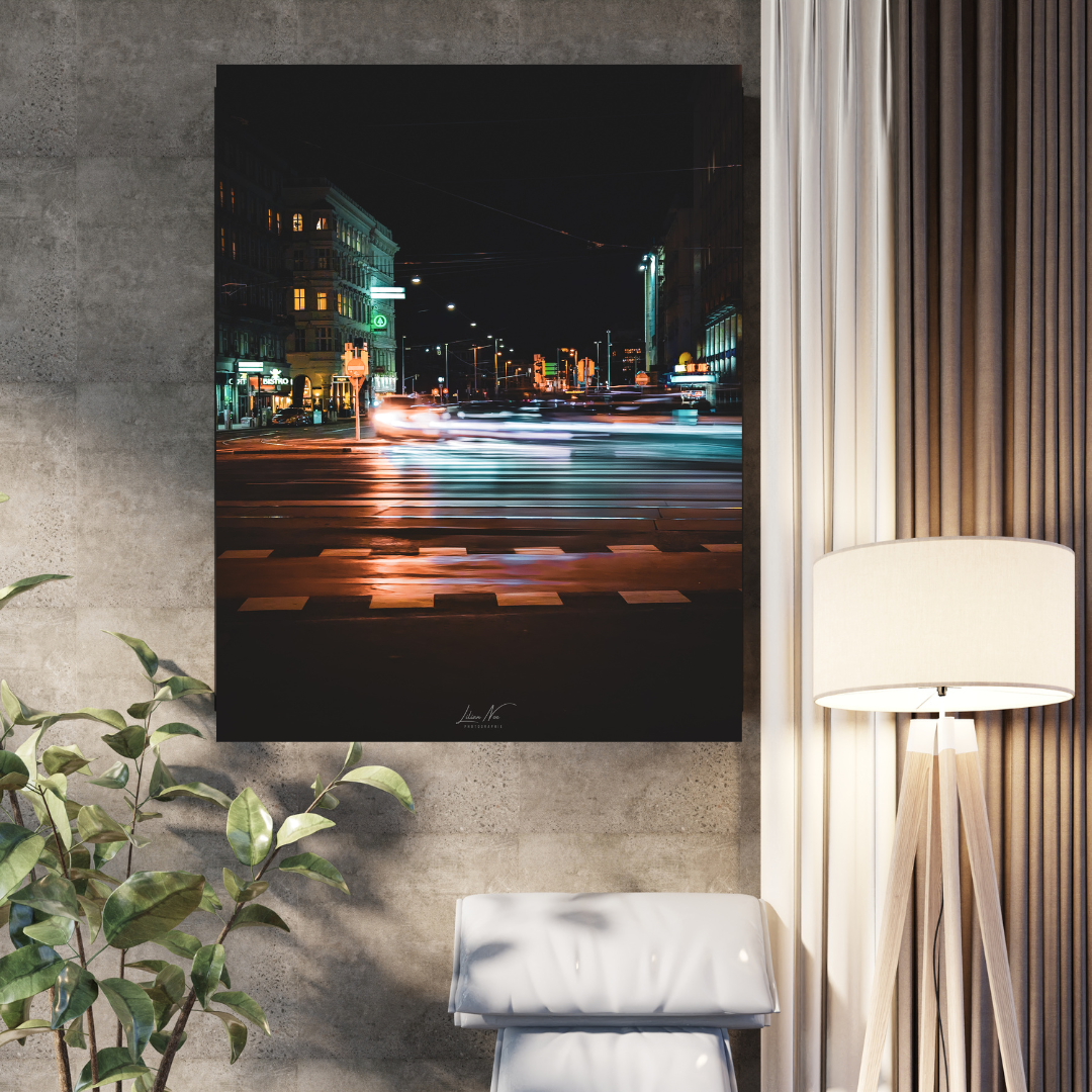 Dans cette photo nocturne captivante de Vienne, les couleurs chatoyantes et les techniques de lightpainting créent une ambiance dynamique et envoûtante.